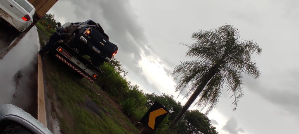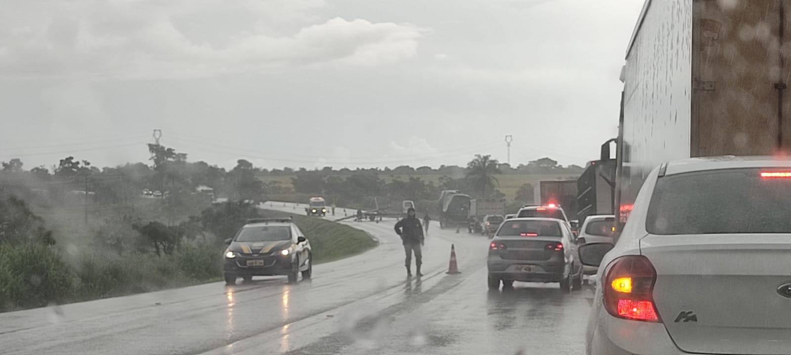 Trânsito comprometido: trecho da BR-163 é interditado após acidente em Jaraguari durante forte chuva