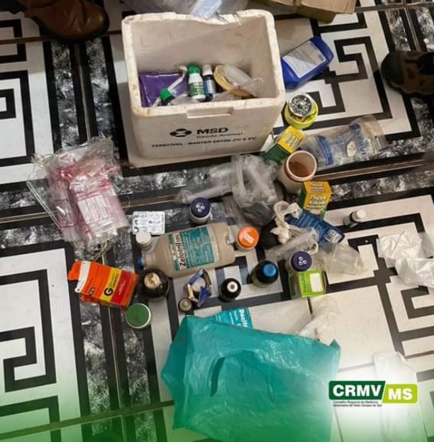 Durante a fiscalização, foram encontradas provas de atendimento clínico, uso de medicamentos controlados, equipamentos de emergência, ampolas de vacinas, seringas usadas, além de muitos medicamentos vencidos, produtos sem autorização para venda e produtos impróprios para o consumo animal.